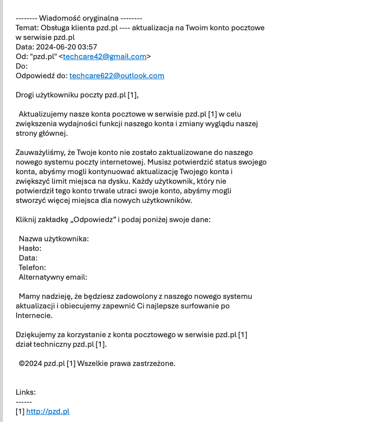 - PZD nigdy nie wymaga Państwa haseł do aktualizacji systemu pocztowego.