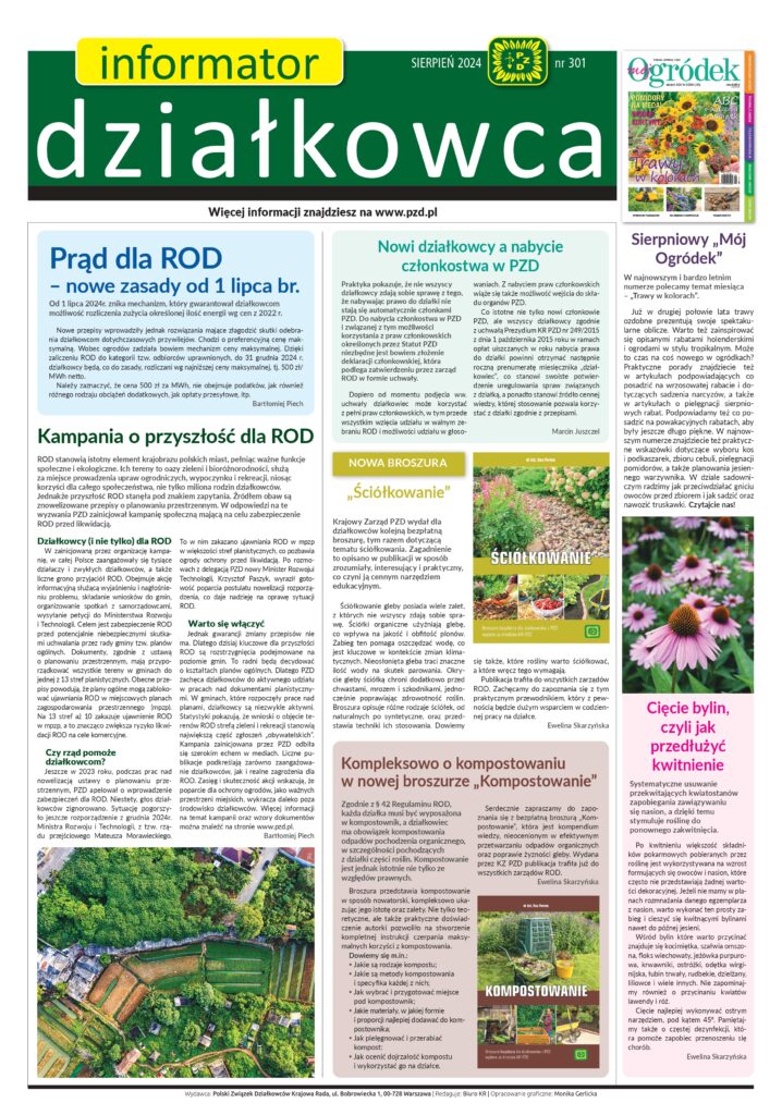 Informator „działkowca” sierpień 2024 – 01.08.2024