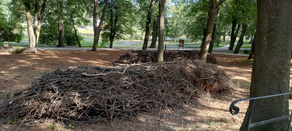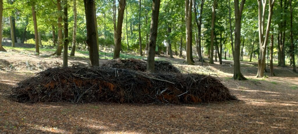 4. Kopce gałęzi ułożonych naprzemiennie z przycinki drzew.