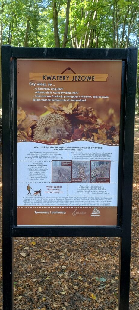 Podczas jesiennego spaceru w Parku Tysiąclecia w Zielonej Górze można zaobserwować wydzielony obszar terenu przyjaznego jeżom. Ułożone kopce pociętych gałęzi platana przewróconego podczas burzy, który po upadku okazał się pusty w środku, zostały wykorzystane na naturalne schronienie dla jeży w wydzielonym obszarze parku. Puste pnie stworzyły przyjazne miejsce dla tych ssaków do przetrwania trudnego, wyczerpującego ich organizm zimowego snu.