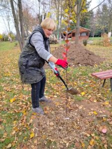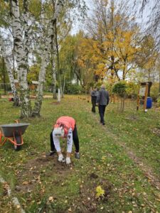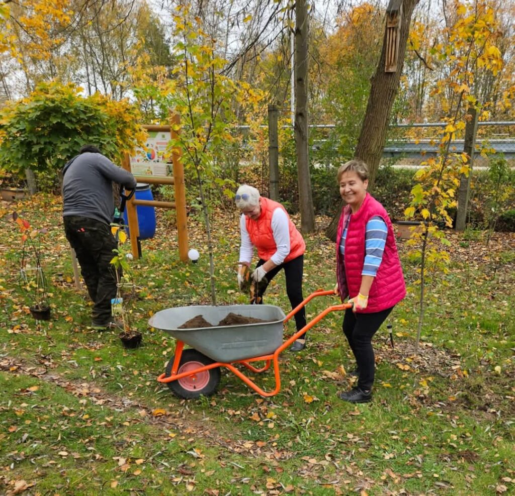 (fot. Ewa Romanów) Zazielenianie terenu drzewami i krzewami ze środków PFC – projekt „Seniorzy dla klimatu”,  listopad 2024 r.