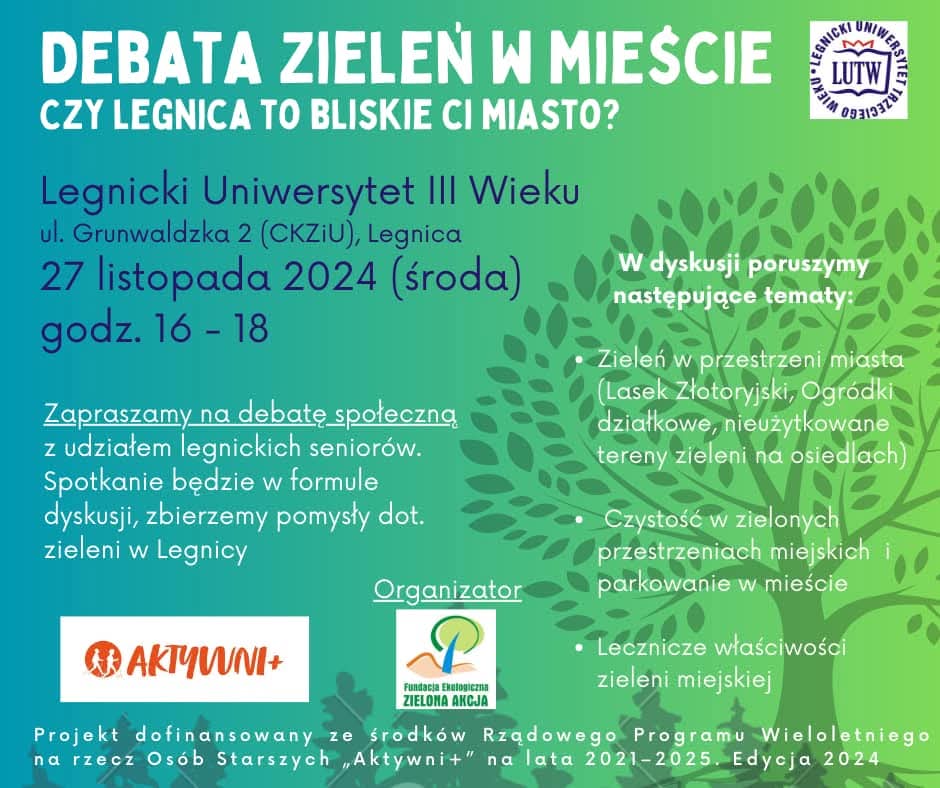 Mając na uwadze rozwój naszego miasta Legnicy, zapraszamy mieszkańców na debaty społeczne o przyrodzie i zieleni. Nic o nas, bez nas.