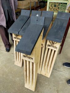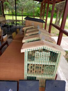 Budki dla jeży i nietoperzy z przyznanych grantów w ROD „Pod Pająkiem”, 2023 r.