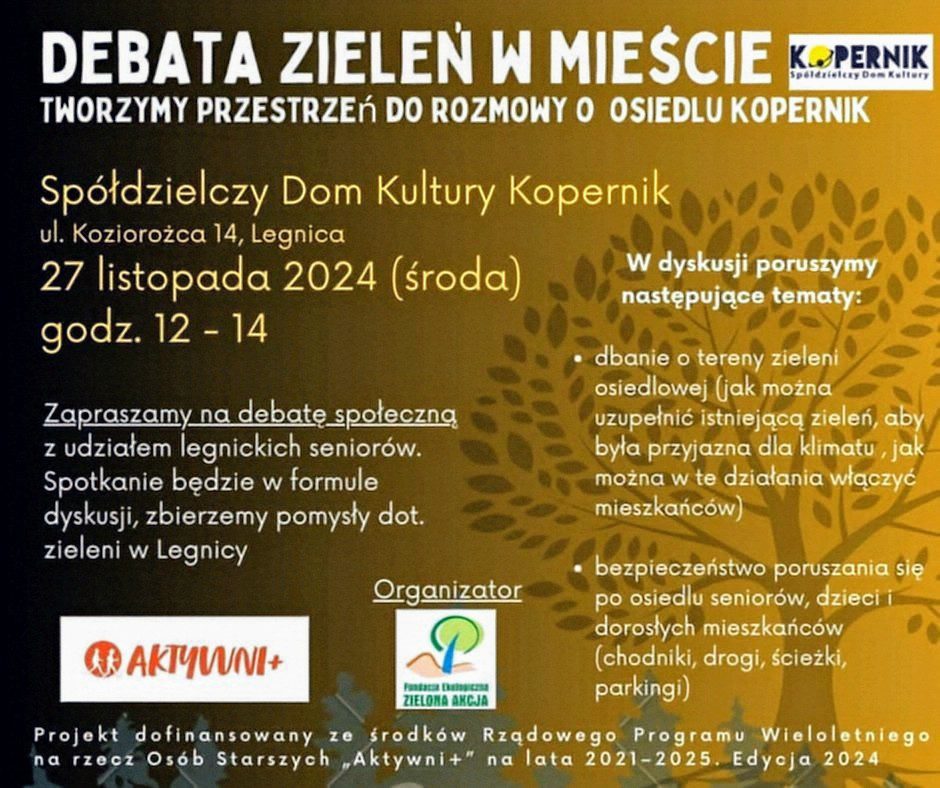 Na trzecią debatę o godz. 12 – 14 dnia 4 grudnia 2024 r. (środa) zapraszamy mieszkańców Legnicy do Centrum Witelona, sala konferencyjna w Parku Miejskim.