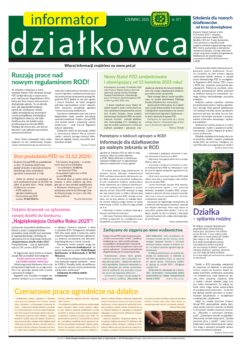 W czerwcowym Informatorze „działkowca” m.in. o rozpoczęciu pracach nad regulaminem ROD, rejestracji statutu PZD, obowiązkowych szkoleniach dla nowych działkowców, informacji dla działkowców po walnym zebraniu w ROD, działce -spiżarni rodziny, czerwcowych pracach ogrodniczych oraz o upływającym terminie zgłoszeń do konkursu „Najpiękniejsza Działka roku 2025”.
