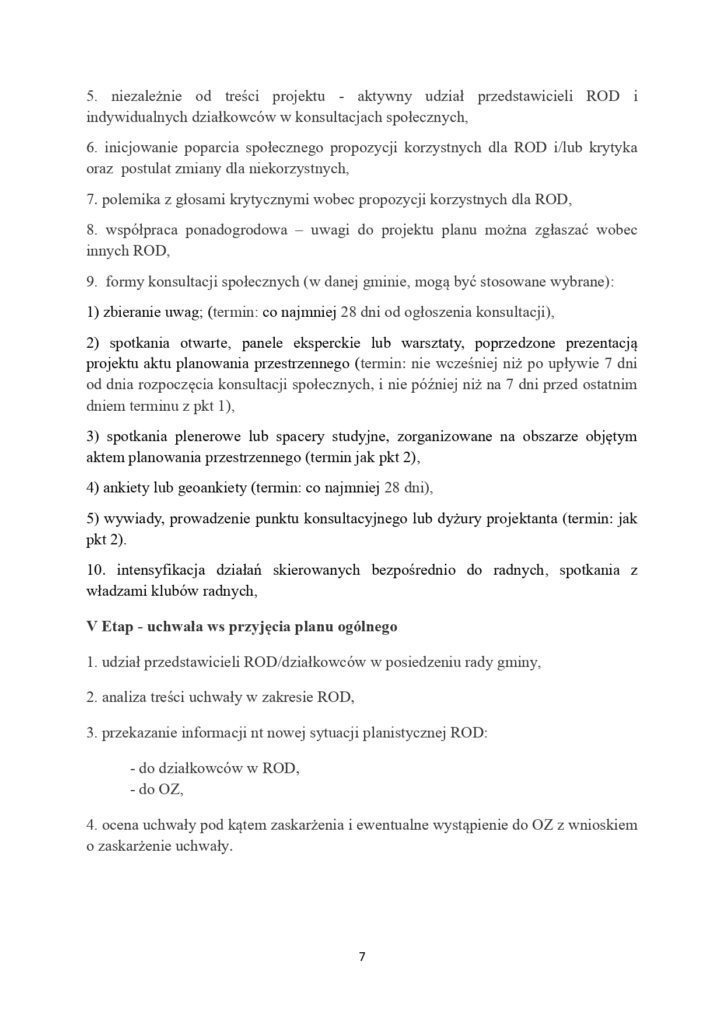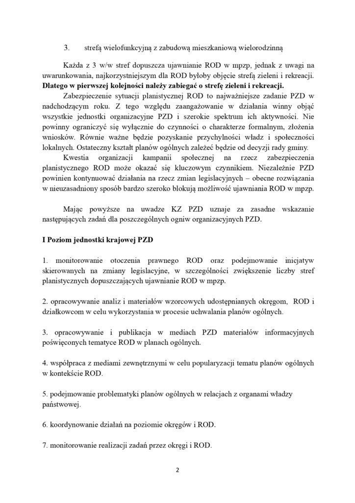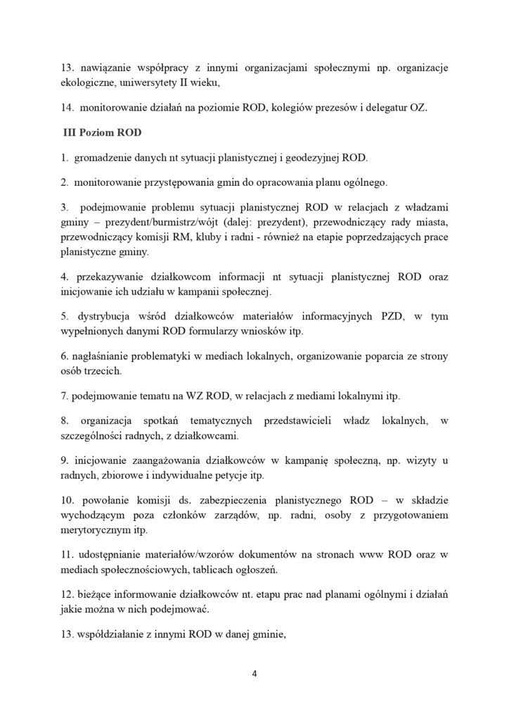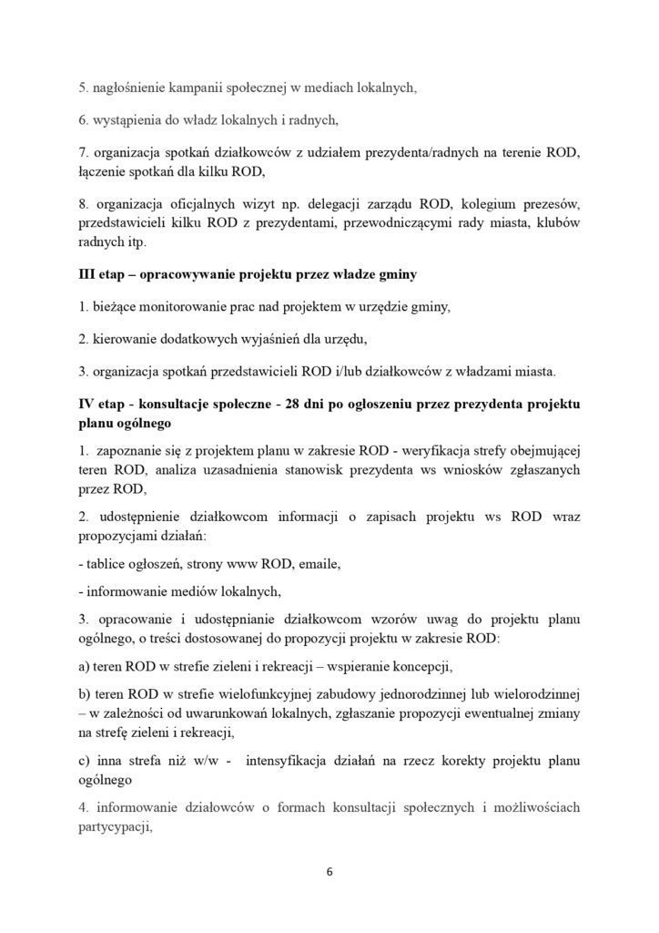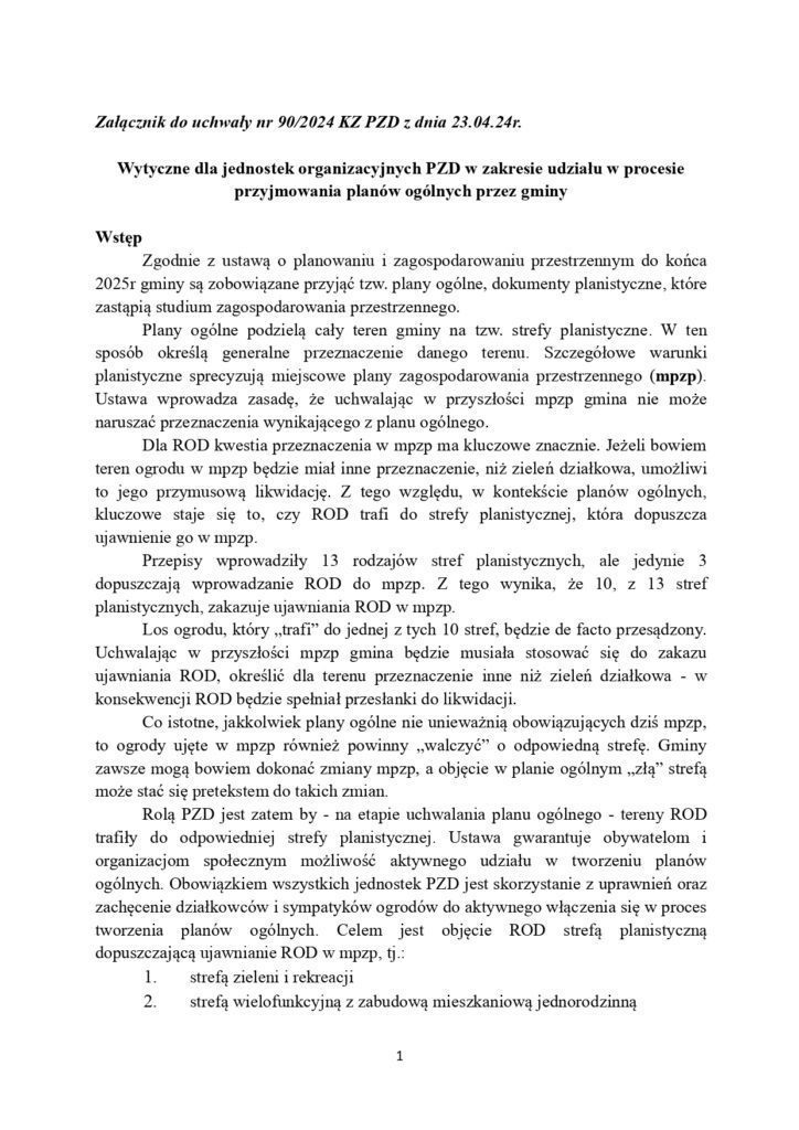 Gminy przystępują do prac nad planami ogólnymi – dokumentami które pośrednio mogą stworzyć warunki do masowej likwidacji ROD. Ostatecznie o planach zadecydują rady gmin, ale ustawa daje działkowcom możliwość aktywnego włączenia się w proces ich przygotowania. Krajowy Zarząd PZD opracował propozycje działań, jakie organy PZD mogą podjąć by zwiększyć szanse na rozstrzygnięcia korzystne dla ROD.