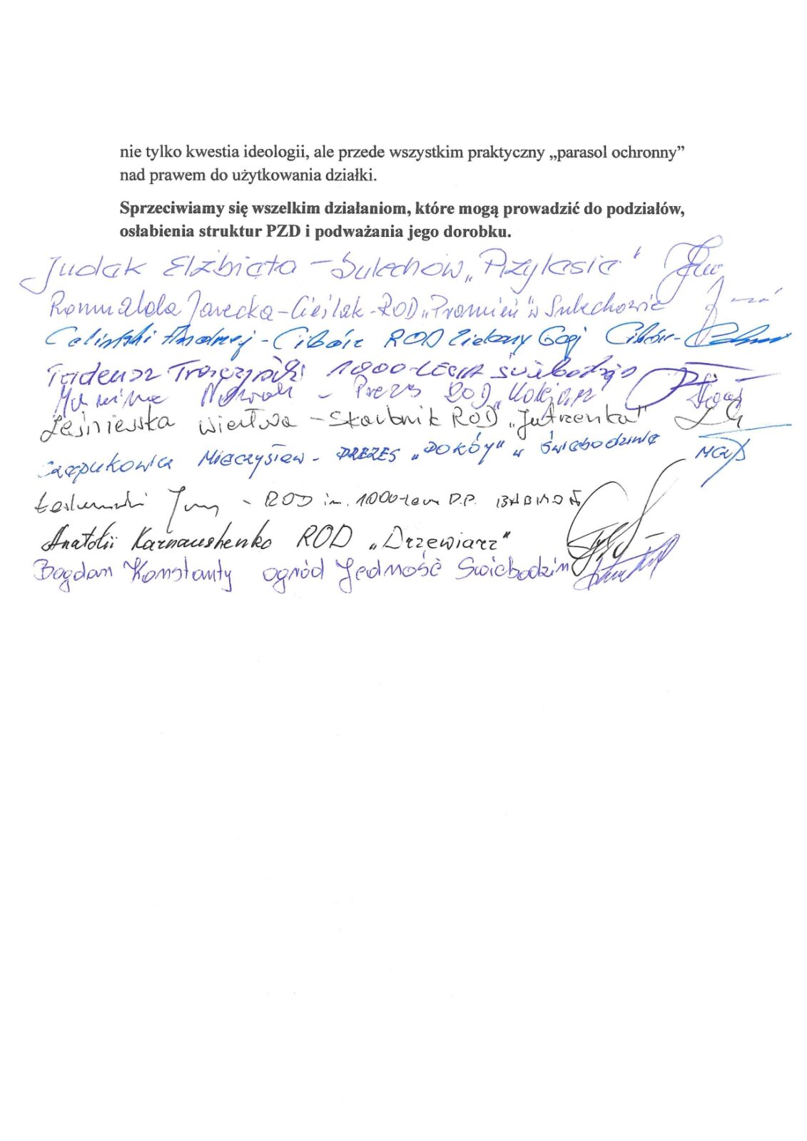 Stanowisko Prezesów Rodzinnych Ogrodów Działkowych z miejscowości Sulechów, Świebodzin, Zbąszynek, Kargowa, Babimost, Cibórz w sprawie ochrony jedności Polskiego Związku Działkowców – 23.12.2025