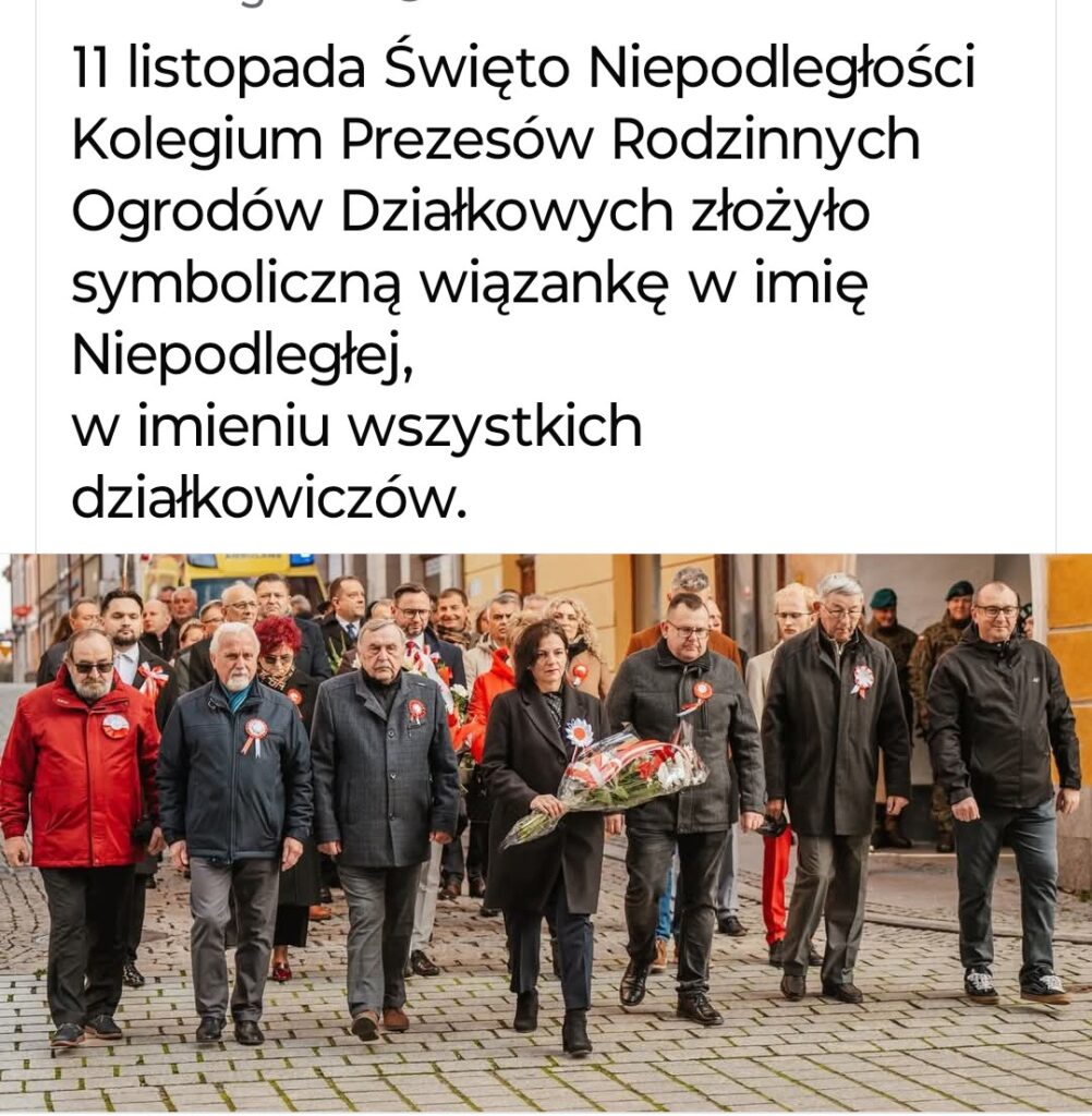 Prężnie działające Kolegium Prezesów Rodzinnych Ogrodów Działkowych w Jaworze złożyło symboliczna wiązankę w imieniu wszystkich działkowców pod Pomnikiem Tysiąclecia Państwa Polskiego i Zwycięstwa nad Faszyzmem.